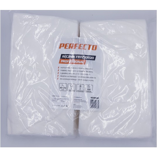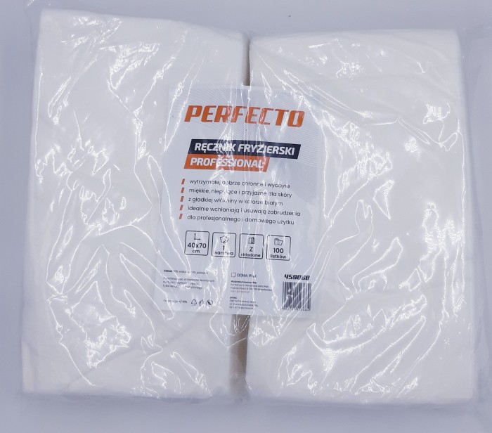 Ręcznik fryzjerski PERFECTO PROFESSIONAL składany 1W biały 100szt. Skład: 70% wiskoza, 30% poliester