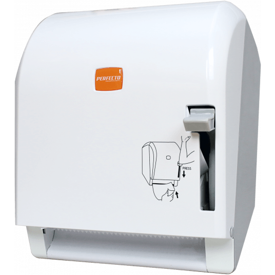 PERFECTO Dozownik biały manualny do ręczników systemowych, ABS, szt. pasuje do tulejek od 3,5cm do 6cm, szer. rolki min. 19cm max 21cm. TOWAR NA ZAMÓWIENIE, dostępny w ciągu 8 dni. Cena może być nieaktualna, prosimy o kontakt w celu potwierdzenia.