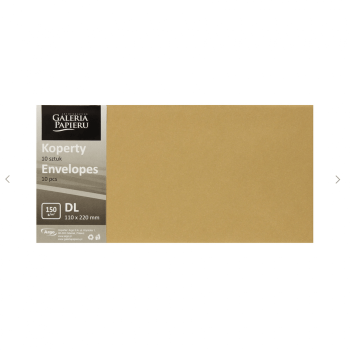 Koperta DL Złota 110x220mm 10 sztuk