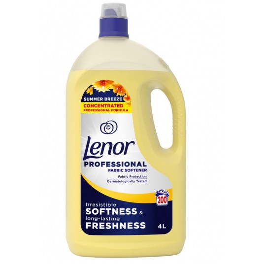 LENOR SUMMER 4L profesjonalny i mocno skoncentrowany płyn do płukania i zmiękczania tkanin, który sprawia, że tkaniny są miękkie i przyjemne w dotyku, ogranicza zagniecenia i ułatwia prasowanie. Posiada zaawansowaną recepturę doskonale zmiękczającą materiał, zapobiegającą elektryzowaniu się, oraz utrzymującą delikatny owocowo-kwiatowy, letni zapach i niezwykłą miękkość tkanin nawet po suszeniu ich w suszarkach bębnowych. Słodka ale zarazem delikatna woń płynu pozostaje długo na materiale, gdyż uwalnia się dopiero podczas używania odzieży, ręczników i bielizny pościelowej. Lenor Summer swoją kompozycją zapachową zapewni ci kojący dotyk promieni słonecznych na skórze.
