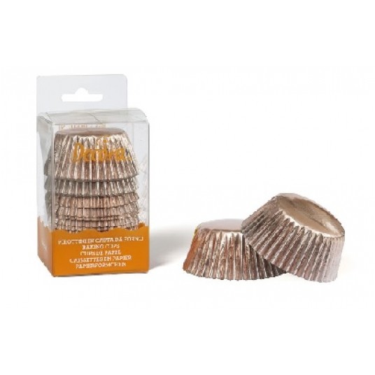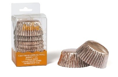 Błyszcząca papilotka w kolorze różowego złota, wykonana z odpornego na tłuszcz papieru. Papilotka jest przeznaczony do wypieku w temperaturze do 220°C, nadaje się także do zamrażania. Produkt jest samonośny, nie wymaga dodatkowej blaszki lub stelaża do wypieku. Papilotka polka charakteryzuje się białym wnętrzem pokrytym laminatem. Papilotki znajdują także zastosowanie przy ekspozycji gotowych wyrobów cukierniczych w ladzie chłoniczej jak i podczas uroczystości i przyjęć m.in. jako element dekoracji słodkiego stołu.