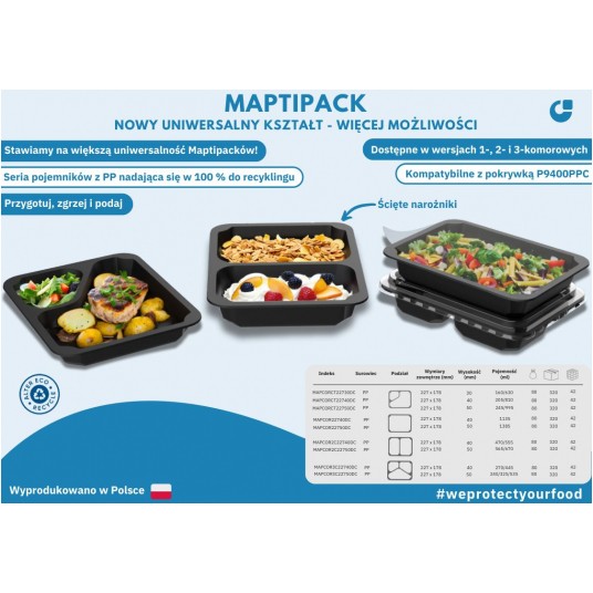 Pojemnik do zgrzewu MAPCOR 3-DZ 227x178x30 CZARNY 320szt Pojemność: Pasuje pod zgrzew oraz pokrywkę P9400PPC Pasuje do matryc METROOPACK i innych