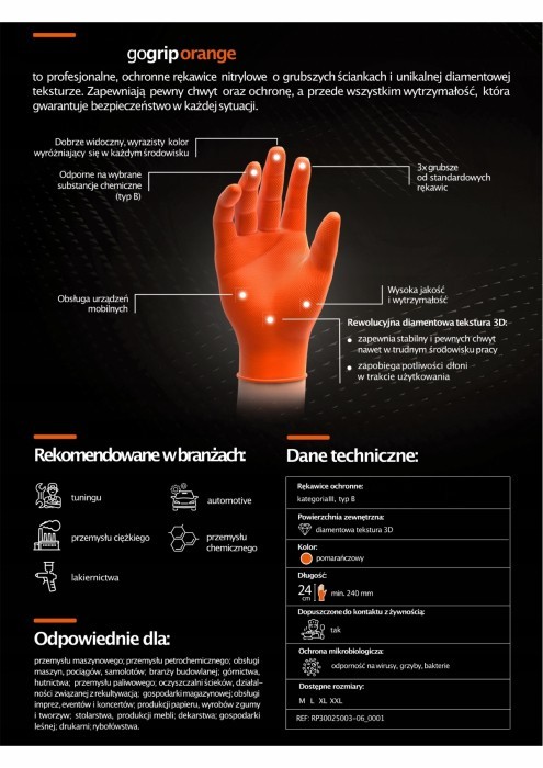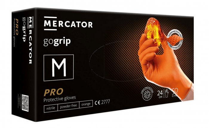 Rękawice nitryl GOGRIP POMARAŃCZOWE 50szt M grube