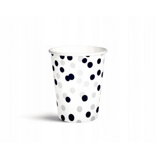 Kubki papierowe 250ml CONFETTI sreb czar 8szt /12