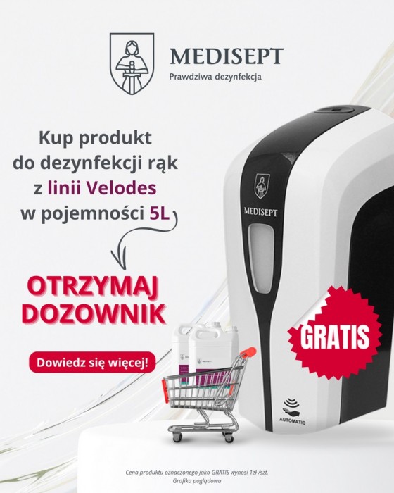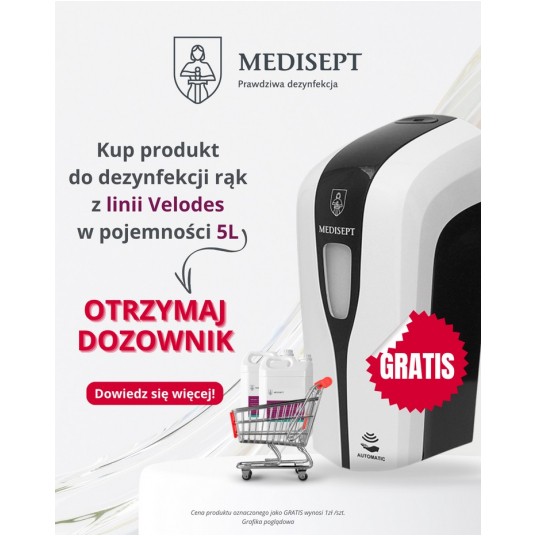 Przy zakupie płynu do dezynfekcji rąk i powierzchni Velodes 5L (sym: ML564) dozownik za 1zł.