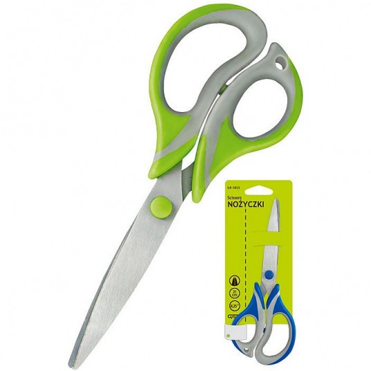 – rączki nożyczek wykonane z wytrzymałego tworzywa sztucznego – miękki gumowany uchwyt – zaokrąglone końcówki – rozmiar 8,25`(21 cm)