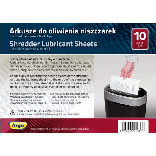 Arkusze do oliwienia niszczarek Argo A5 6ml 10szt