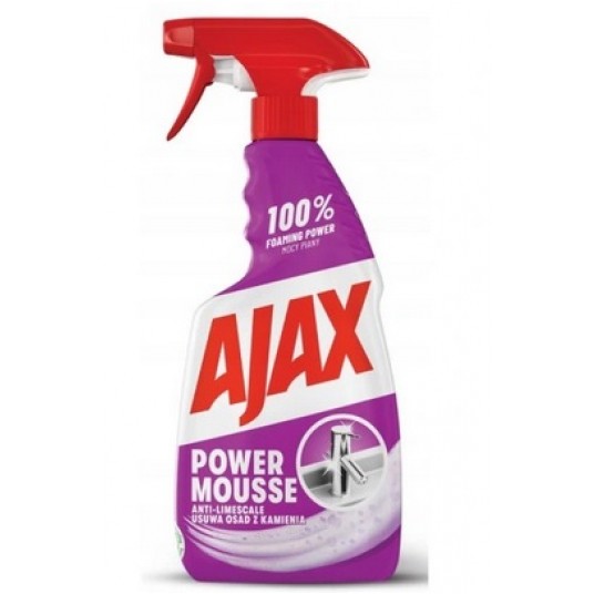 Pianka do czyszczenia łazienki Ajax Power Mousse zapewnia 100% mocy pienienia i odkamieniania. Ten środek do usuwania kamienia dzięki swojej konsystencji obfitej piany lepiej przylega do pionowych powierzchni i zapewnia natychmiastowe i głębokie czyszczenie.