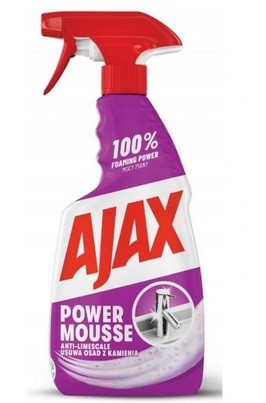 Ten środek do usuwania kamienia dzięki swojej konsystencji obfitej piany lepiej przylega do pionowych powierzchni oraz zapewnia natychmiastowe i głębokie czyszczenie. Dzięki 100% mocy odkamieniania, pianka Ajax Power Mousse do łazienki pozostawia lśniące powierzchnie.