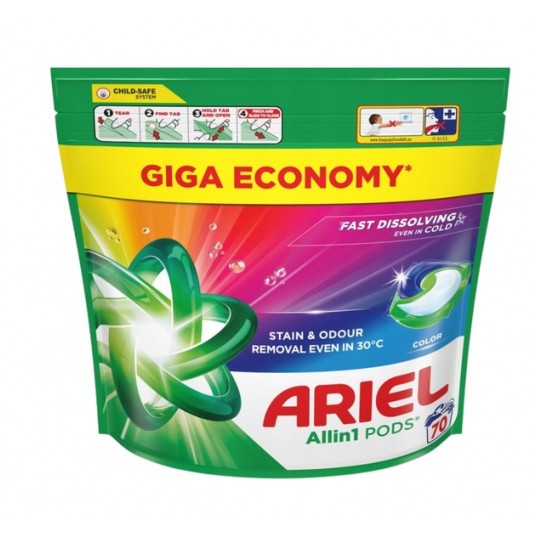 Ariel All-in-1 PODS Color to produkt zaprojektowany tak, aby sprostać wymaganiom nowoczesnych użytkowników pralek, którzy oczekują idealnego czyszczenia oraz oszczędności czasu i energii. Formuła kapsułek działa kompleksowo: penetruje włókna tkanin, usuwa zabrudzenia, neutralizuje przykre zapachy i jednocześnie chroni intensywność kolorów. Kapsułki są dostosowane do chłodniejszych cykli, co oznacza, że już w temperaturze 30°C ubrania pozostają czyste i odświeżone bez konieczności stosowania wysokich temperatur.