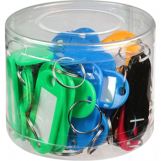-plastikowe zawieszki do kluczy - okienko informacyjne każdej zawieszki zabezpieczone przezroczystą folią ochronną - kształt: owalny - w opakowaniu 50 zawieszek w różnych kolorach
