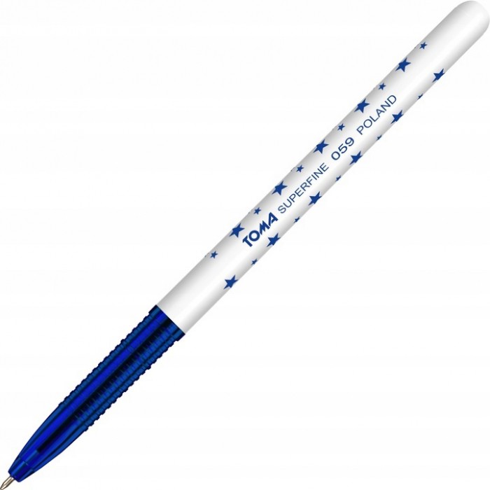 Długopis jednorazowy w plastikowej obudowie w gwiazdki w kolorze tuszu, wentylowana nasadka, trwała kulka z węglików spiekanych wolframu 0.5 mm. Super cienko-piszący opatentowany wkład Floating Ball szwajcarskiej firmy Premec.