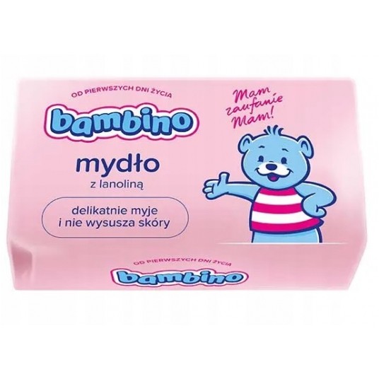 Mydło Bambino delikatnie myje i pielęgnuje skórę, dzięki zawartości lanoliny nie wysusza skóry. Polecane jest do codziennej higieny niemowląt i małych dzieci. Wszystkie kosmetyki Bambino posiadają pozytywną opinię Instytutu Matki i Dziecka.90g,